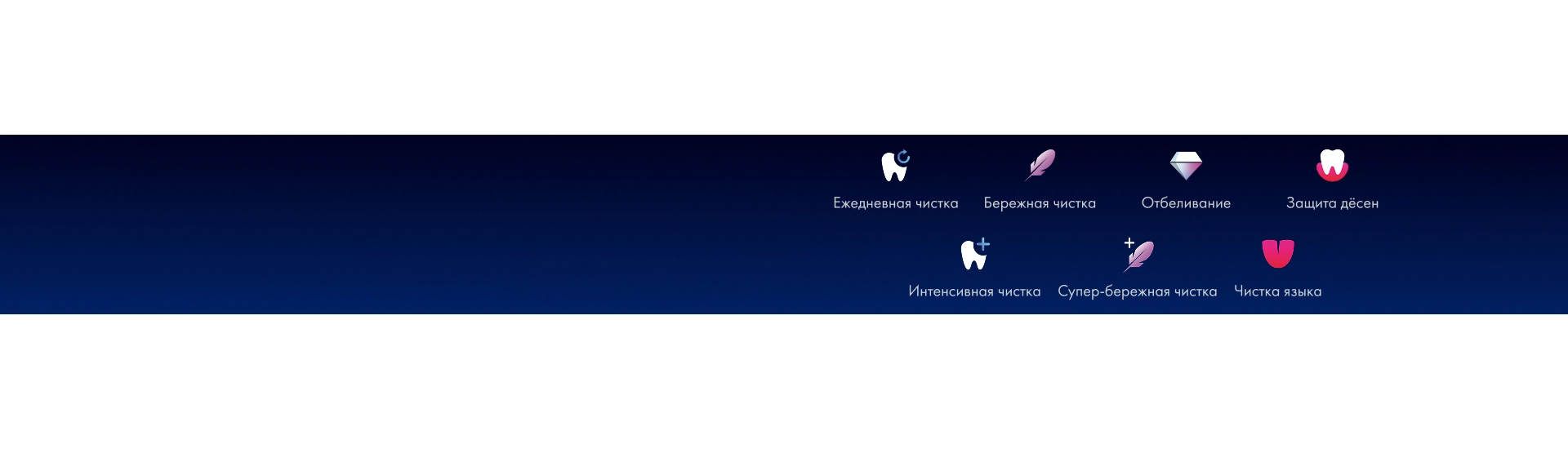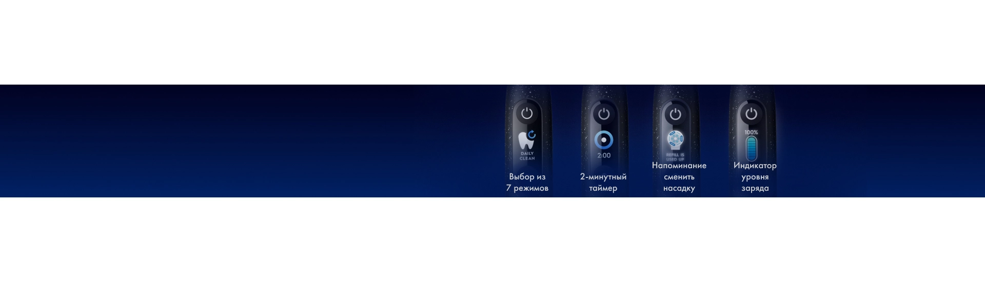 Большой цифровой дисплей делает процесс чистки более наглядным и мотивирующим: вы видите время, выбранный режим и индивидуальные настройки. В зависимости от модели — от iO 5 до iO 10 — доступны до 7 режимов чистки для максимального комфорта и персонального подхода.