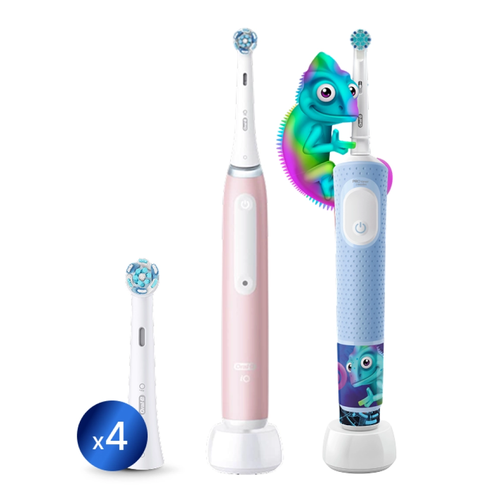 Набор электрических зубных щеток Oral-B Vitality Kids Хамелеон + iO 3 Brush Pink + Насадка Ultimate Clean (4 шт)