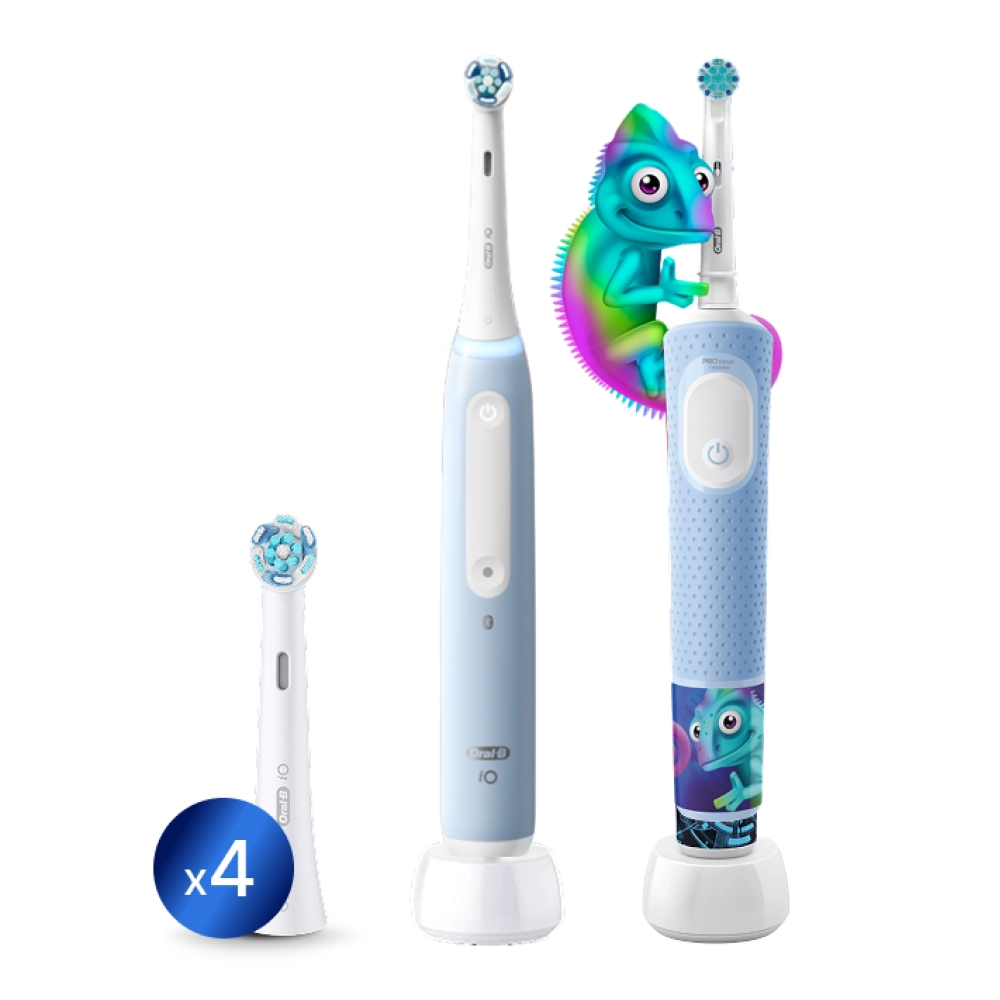Набор электрических зубных щеток Oral-B Vitality Kids Хамелеон + Oral-B iO 3 Ice Blue + Насадка Ultimate Clean (4 шт)